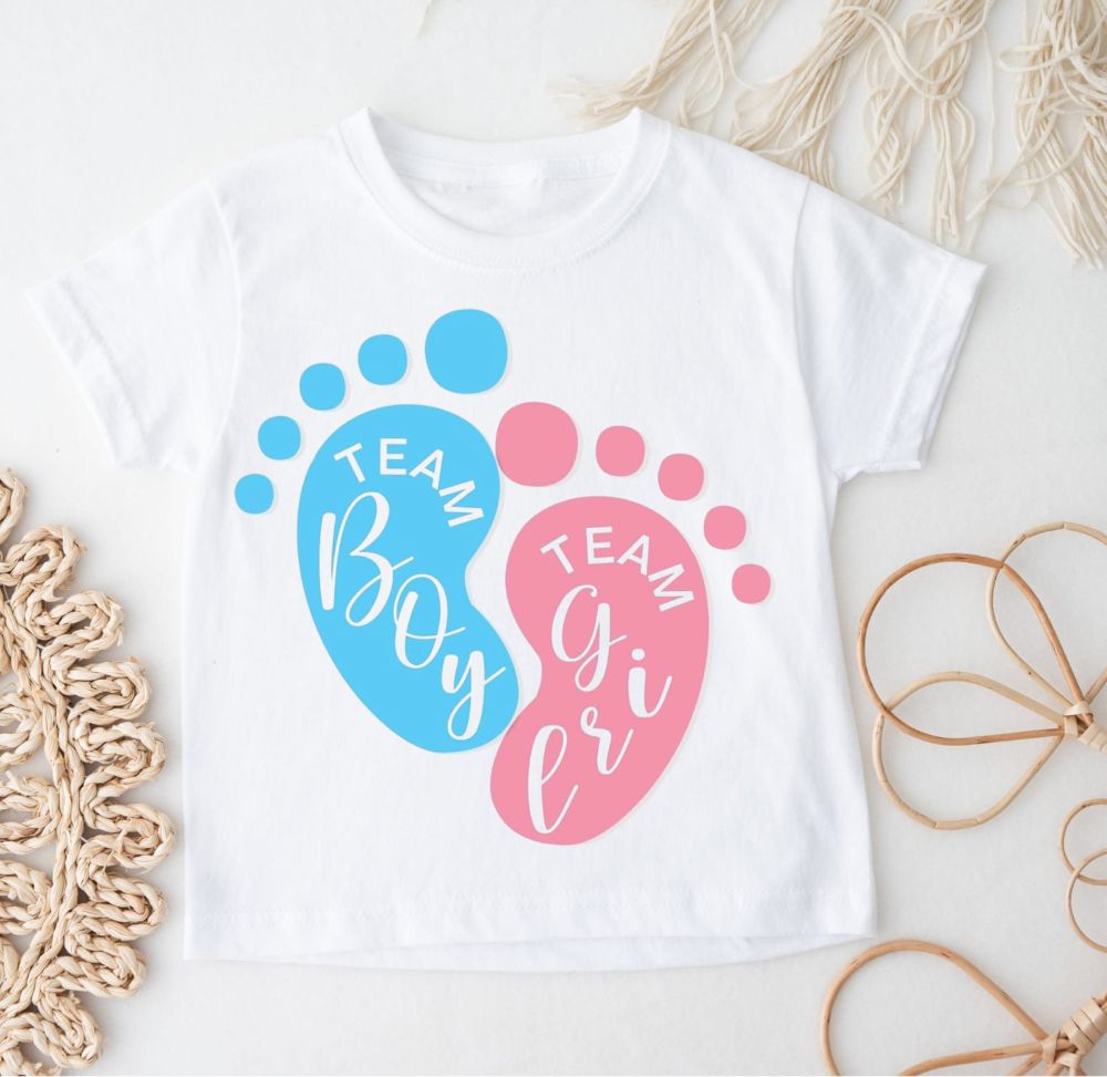 These stunningly designed gender reveal t shirts are perfect for kids of all ages whether team boys or team girls, the perfect garment to wear to a gender reveal party. Available in two beautiful designs printed using high quality ink onto a soft touch polyester t shirt, available in sizes from 6 months up to age 13.