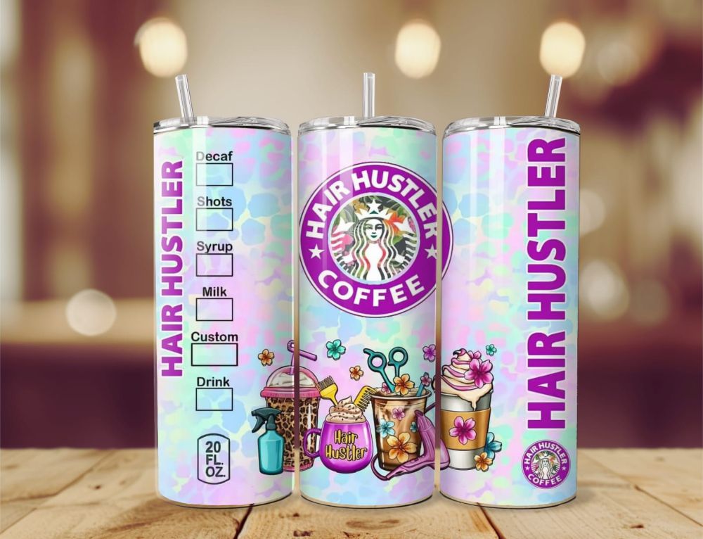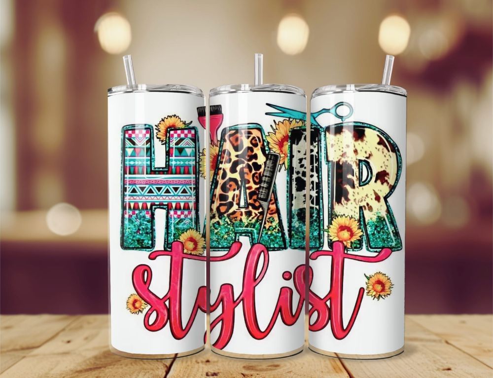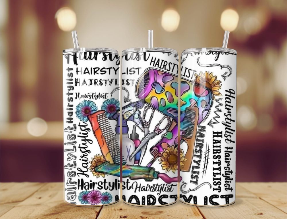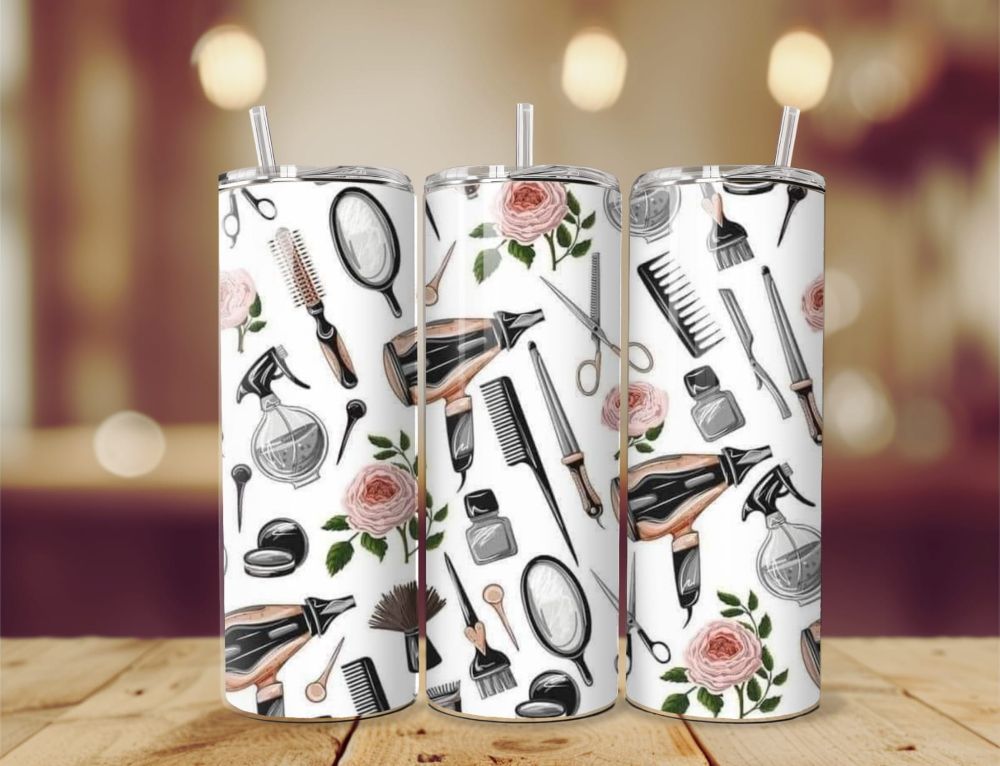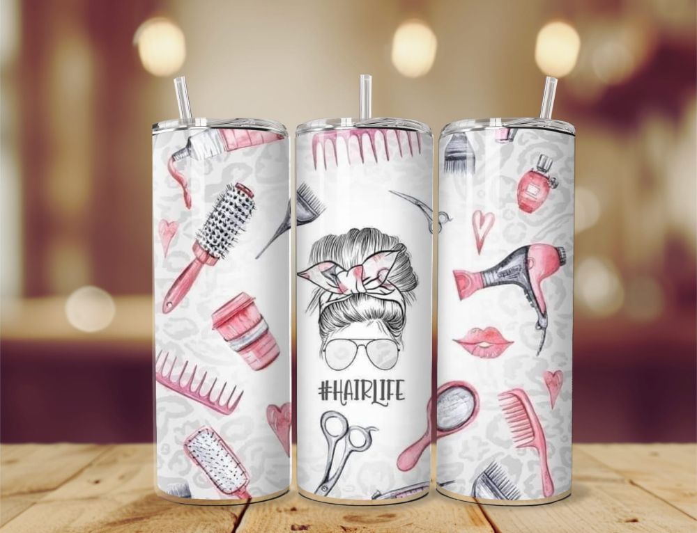 Our variety of stunning hairdressing inspired inspired 20oz tumblers, with 5 different designs to chose from each one is completely unique. Sublimated onto a 20oz BPA free vacuum insulated stainless steel tumbler using high quality ink to produce stand out vibrant colours, the tumblers double wall design provides the perfect insulation to keep your chosen beverage of choice hot or cold for lengthy periods of time whether it be a warming coffee or a refreshing iced cold pop. The rubber bottom reduces the chances of slips and spills, accompanied with the dual purpose tight sealing lid to sip from or to use in conjunction with the aluminium straw provided. The tall and slim design of the tumbler ensures comfortability when holding or on the go taking your beverage of choice along with you.