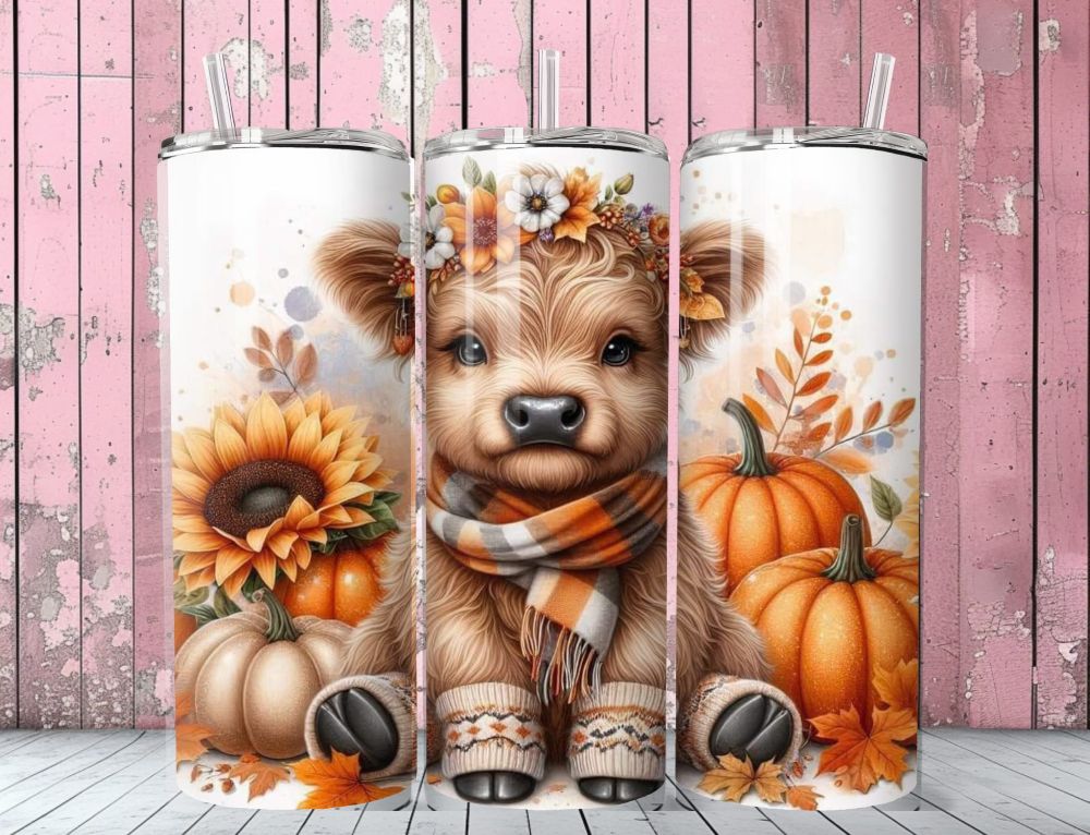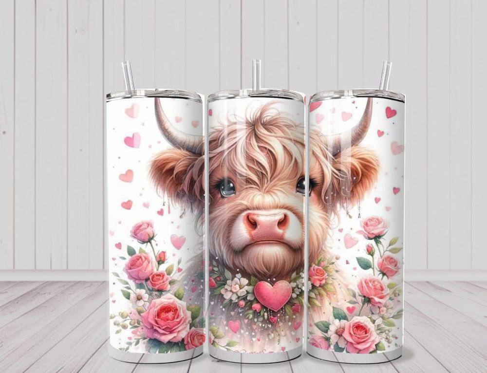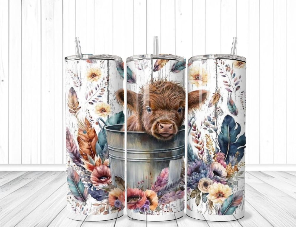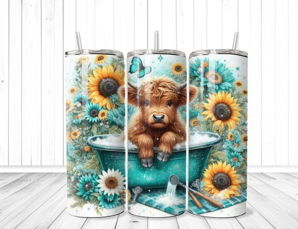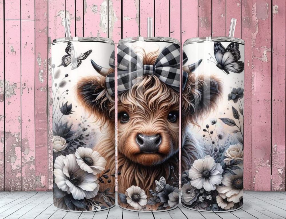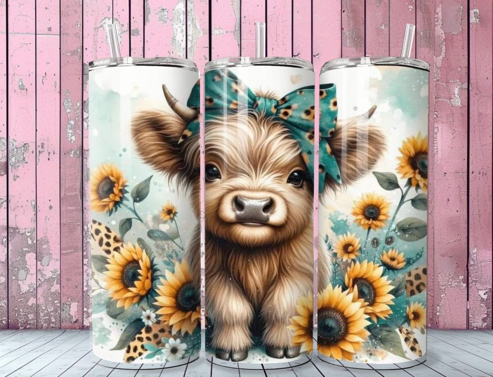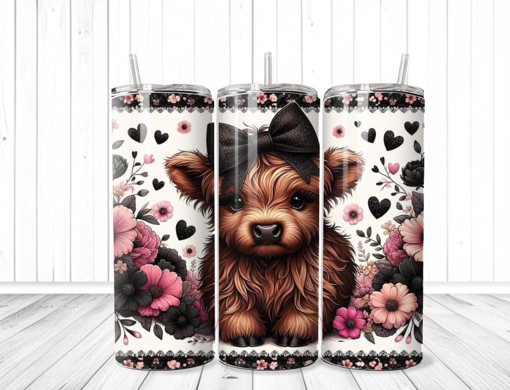 Our variety of stunning highland cow inspired 20oz tumblers, with 12 different designs to chose from each one is completely unique. Sublimated onto a 20oz BPA free vacuum insulated stainless steel tumbler using high quality ink to produce stand out vibrant colours, the tumblers double wall design provides the perfect insulation to keep your chosen beverage of choice hot or cold for lengthy periods of time whether it be a warming coffee or a refreshing iced cold pop. The rubber bottom reduces the chances of slips and spills, accompanied with the dual purpose tight sealing lid to sip from or to use in conjunction with the aluminium straw provided. The tall and slim design of the tumbler ensures comfortability when holding or on the go taking your beverage of choice along with you.