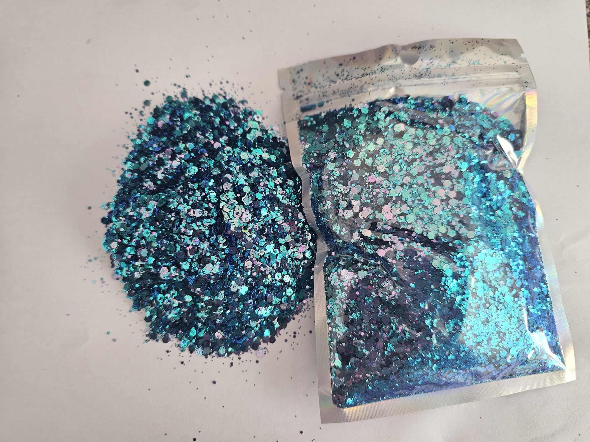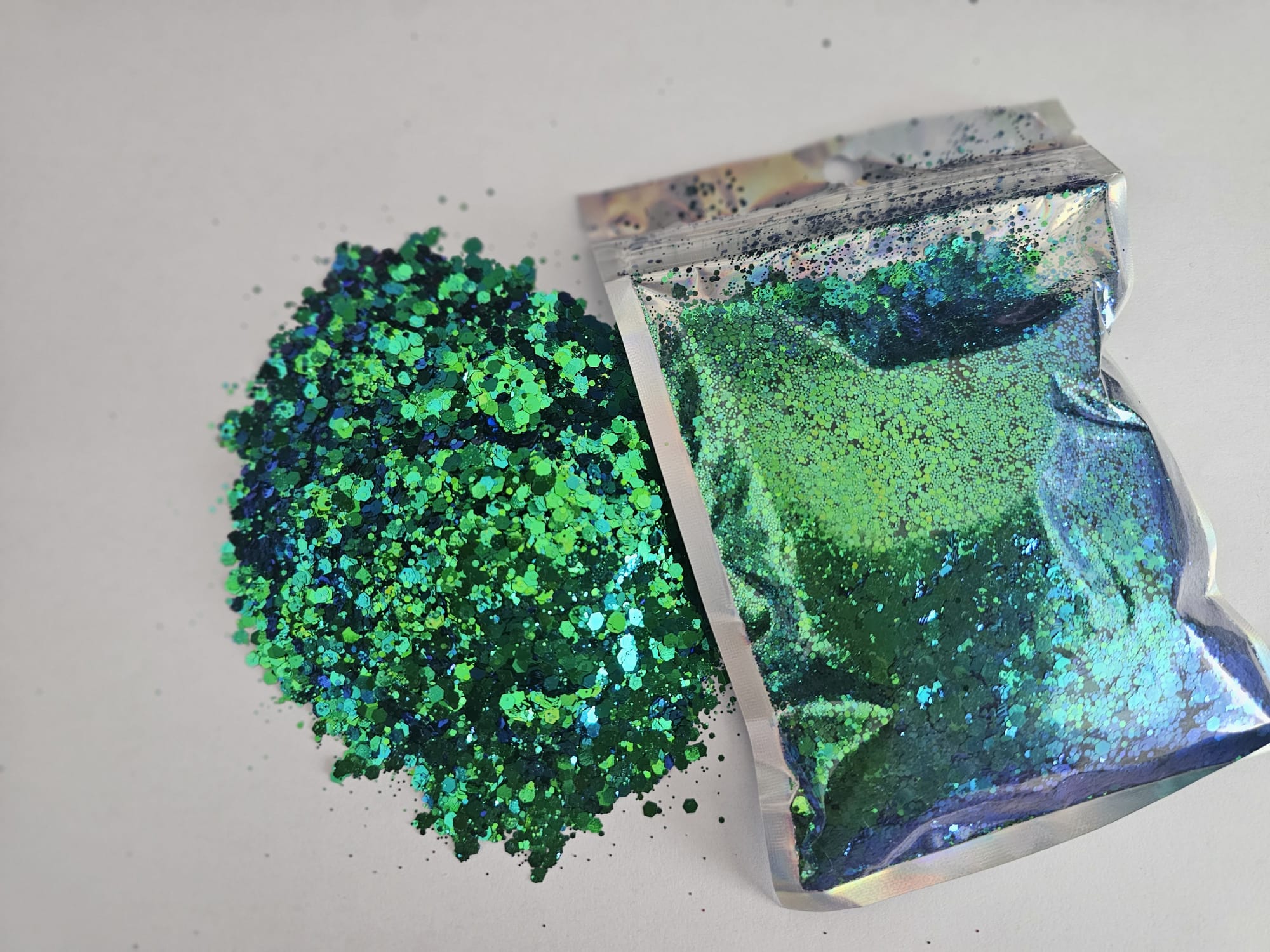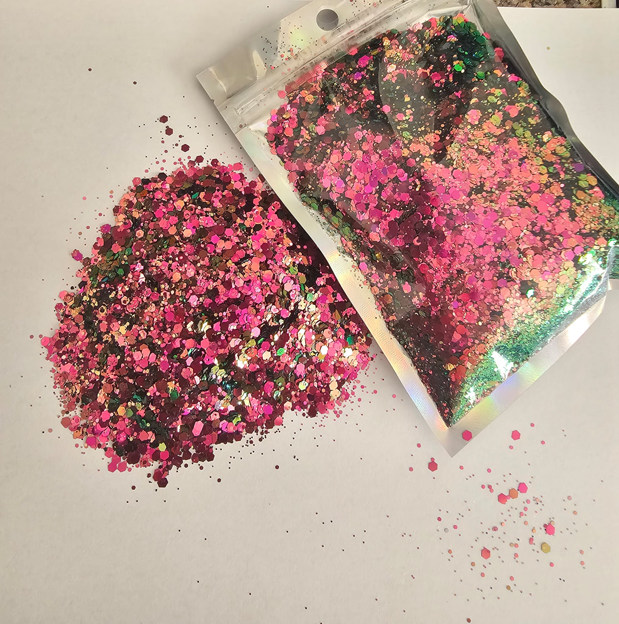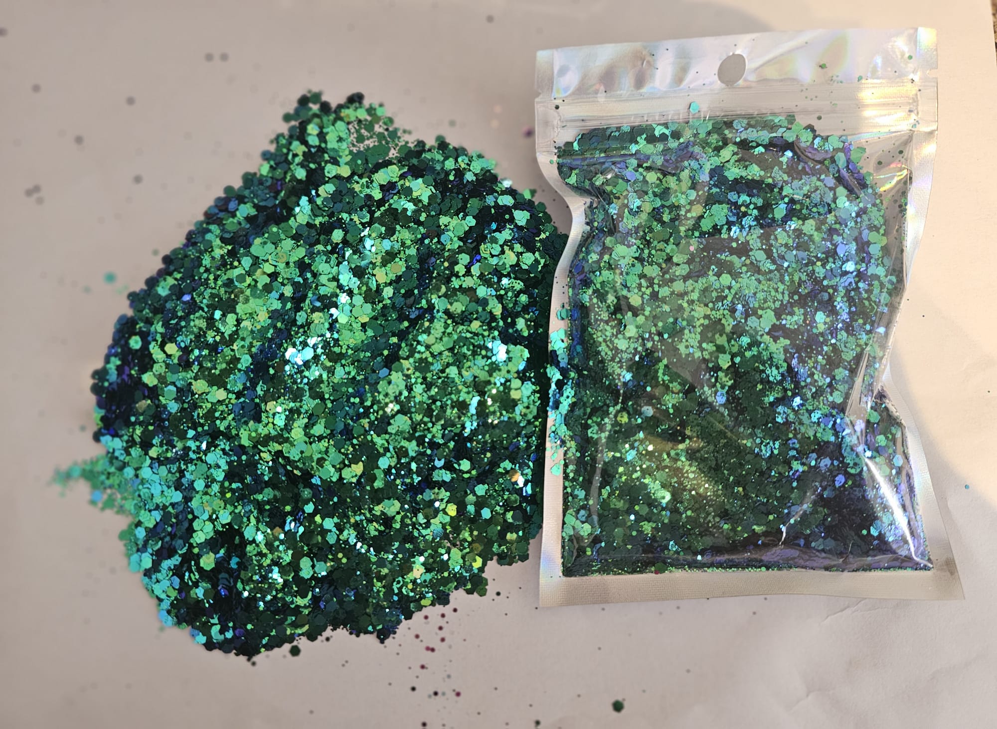 Our strunning sparkling range in holographic chunky glitter available in 12 stunning holographic colours each containing 100g, perfect for your crafting projects. 3mm chunky holographic glitter to make you creations stunning and sparkling.