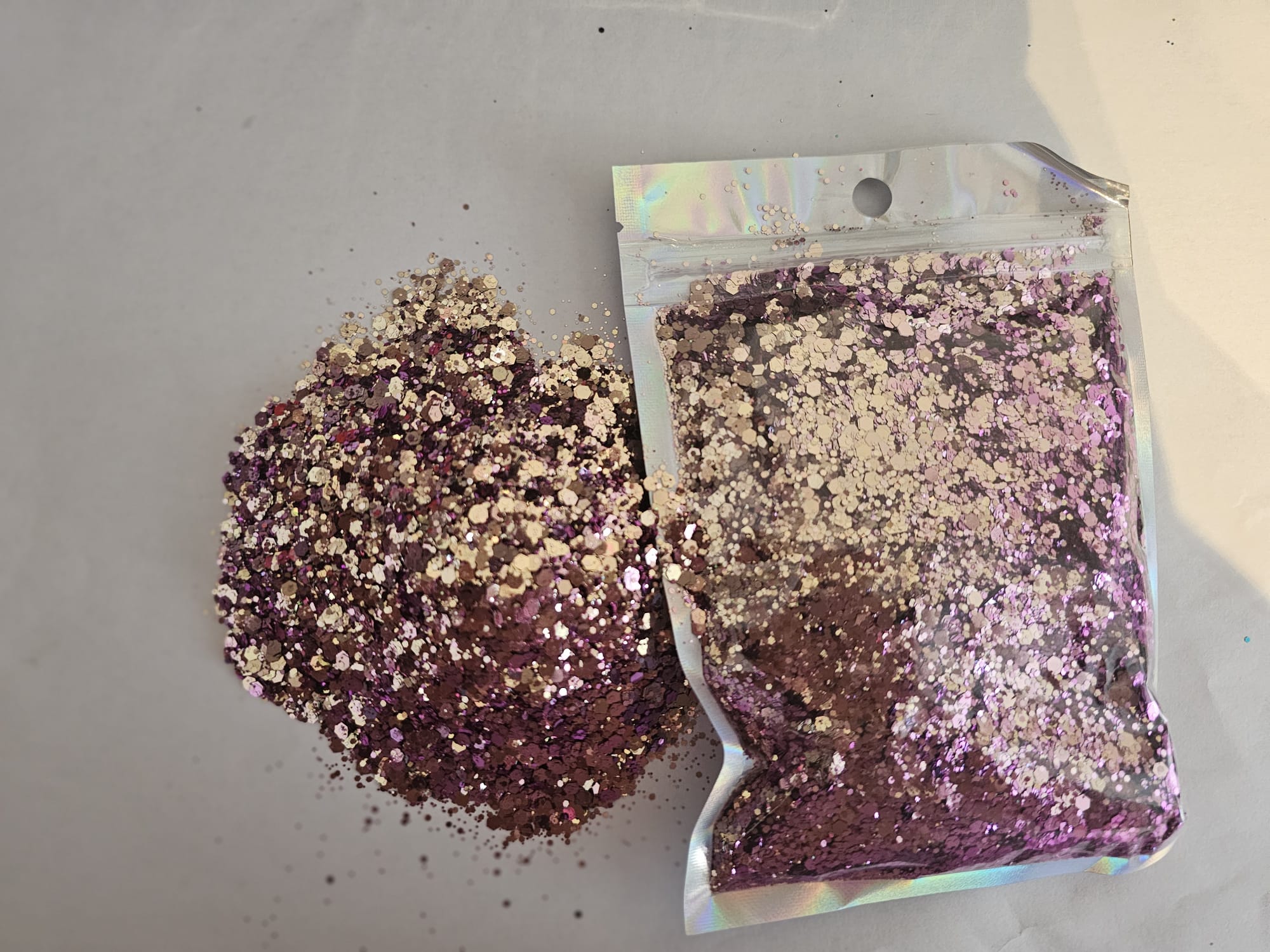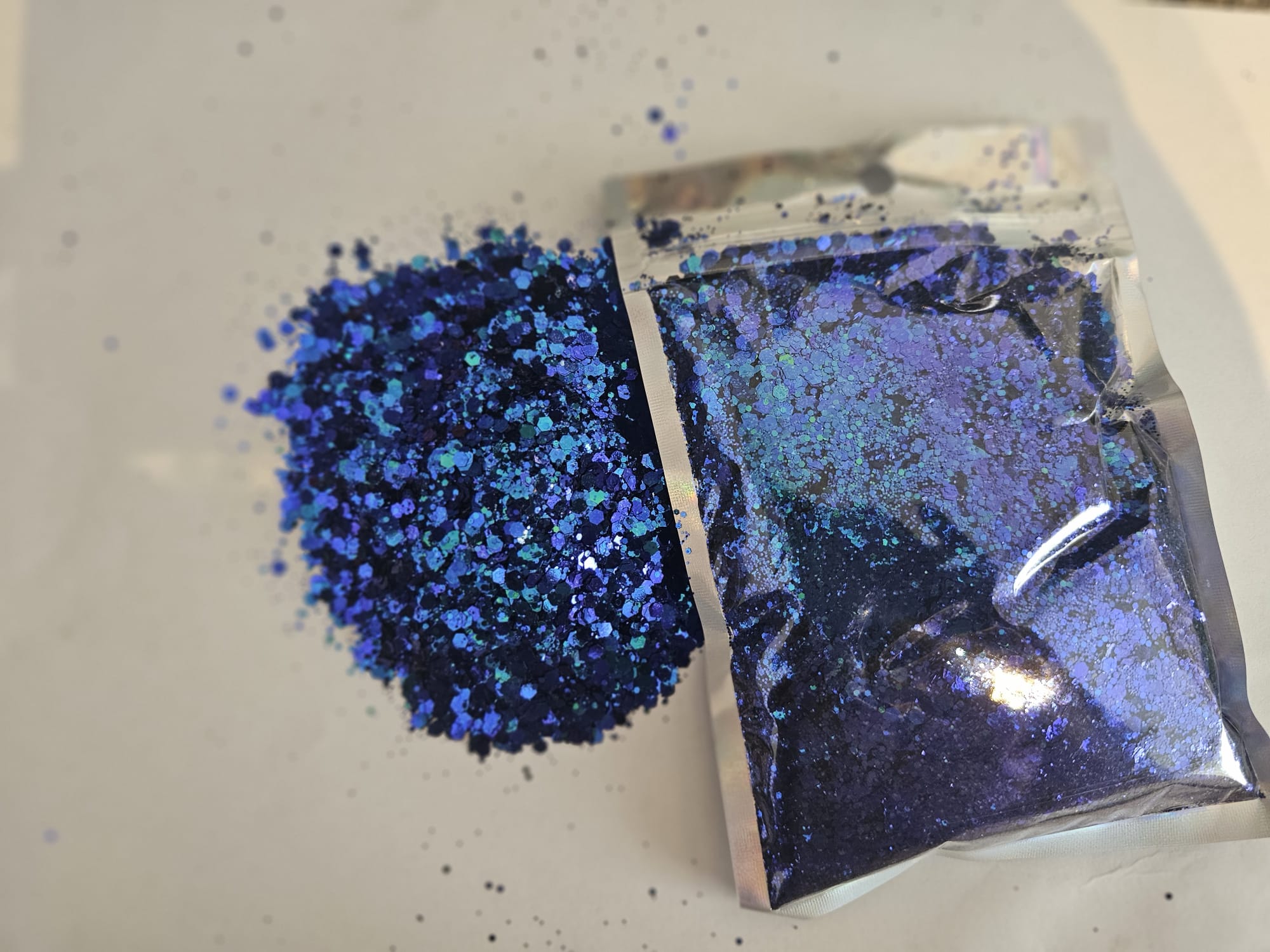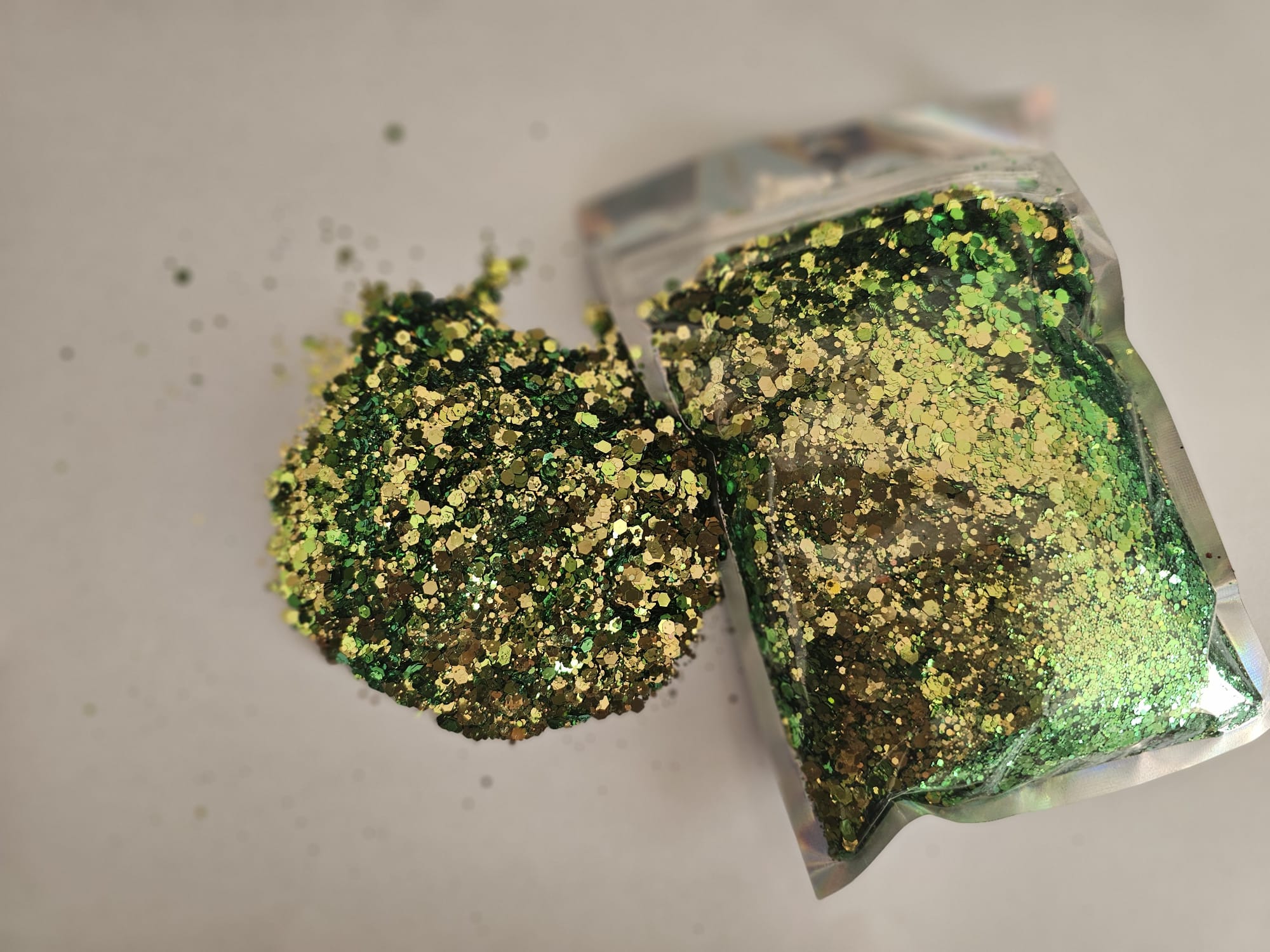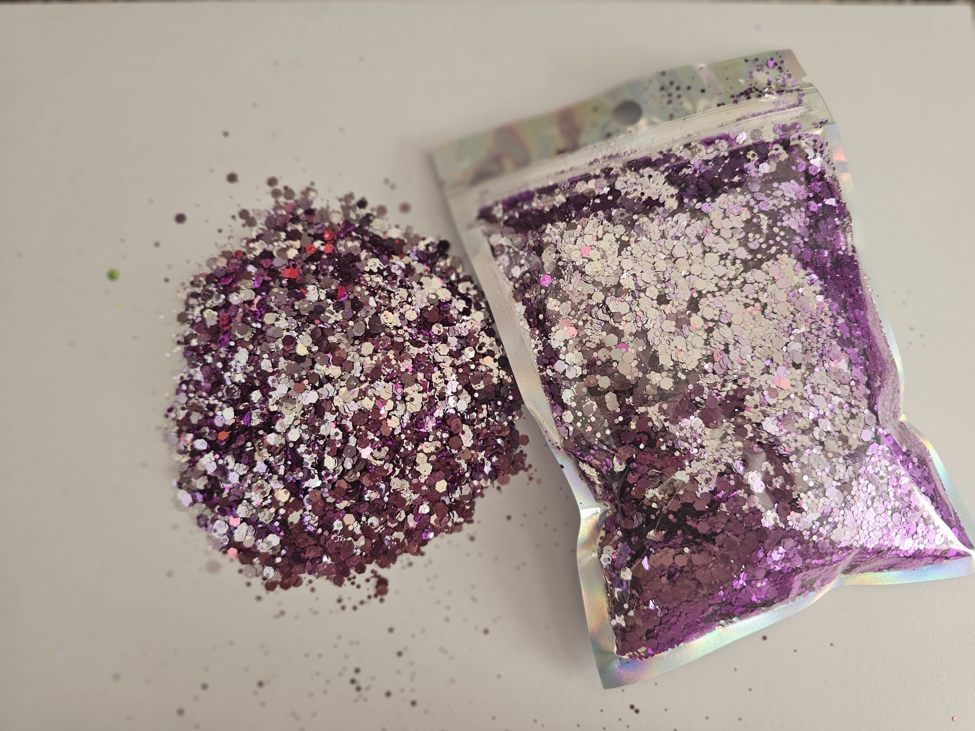Our strunning sparkling range in holographic chunky glitter available in 12 stunning holographic colours each containing 100g, perfect for your crafting projects. 3mm chunky holographic glitter to make you creations stunning and sparkling.