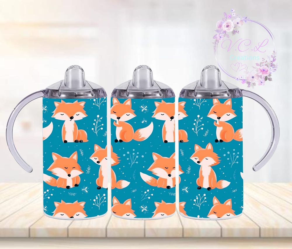 kids cute fox 12oz vacuum insulated sippy cup perfect for little ones of all ages, comes complete with 2 screw on lids 1 leak proof sippy lid with training handles and 1 slide sip lid with straw both lids are screw on lids to prevent spills. The double wall design along with vacuum insulated is perfect for keeping their beverage of choice at the optimised temperature for 6 to 12 hours, whether it be a nice cold glass of juice or a nice warming hot chocolate on a cold night. With two beautiful designs to choose from these sippy cups are the perfect addition to any little ones drinkware collection.