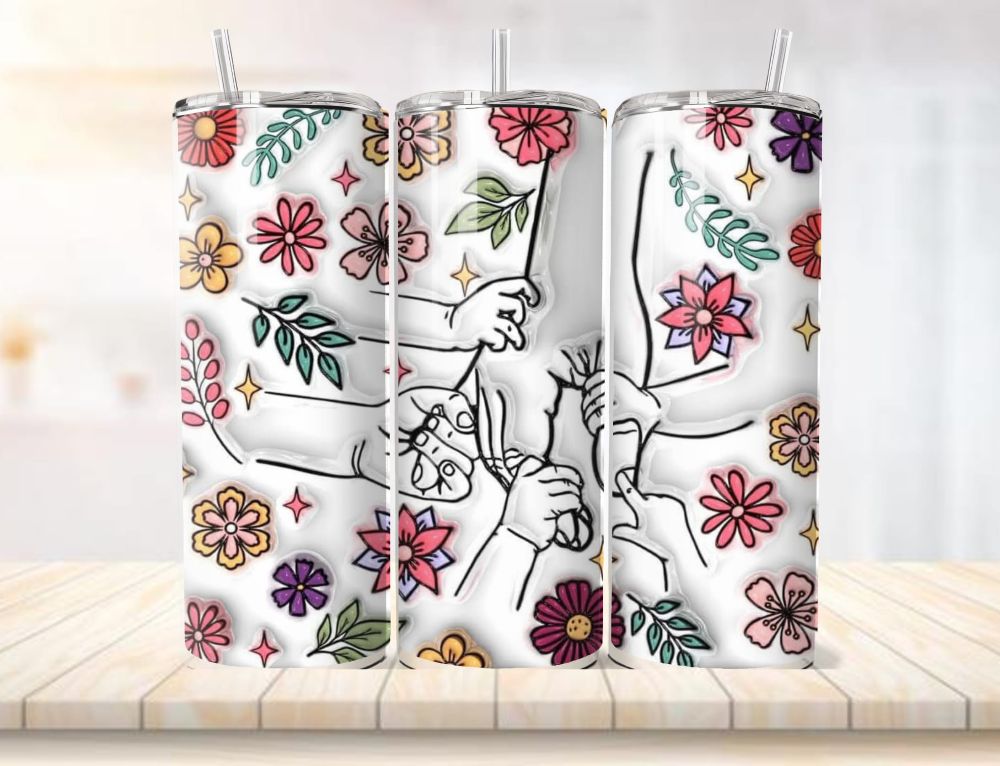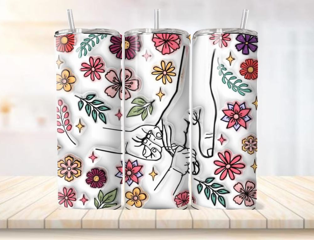 Our variety of mother and children’s hands inspired 20oz tumblers, with 12 different designs to chose from each one is completely unique. Sublimated onto a 20oz BPA free vacuum insulated stainless steel tumbler using high quality ink to produce stand out vibrant colours, the tumblers double wall design provides the perfect insulation to keep your chosen beverage of choice hot or cold for lengthy periods of time whether it be a warming coffee or a refreshing iced cold pop. The rubber bottom reduces the chances of slips and spills, accompanied with the dual purpose tight sealing lid to sip from or to use in conjunction with the aluminium straw provided. The tall and slim design of the tumbler ensures comfortability when holding or on the go taking your beverage of choice along with you.