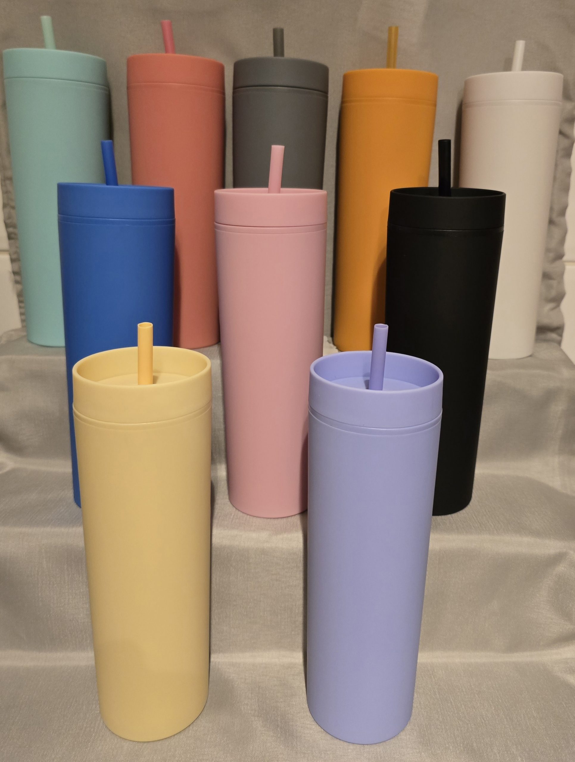 16oz strata cup made from durable plastic that features a double wall design, the 10 pastel colours to choose from add a elegant touch to the design. Perfect for keeping you hot drinks hot and your cold drinks cold, accompanied with a splash proof screw on lid and a colour coordinated tight fitting straw you wont be cleaning any massive spills up any time soon.