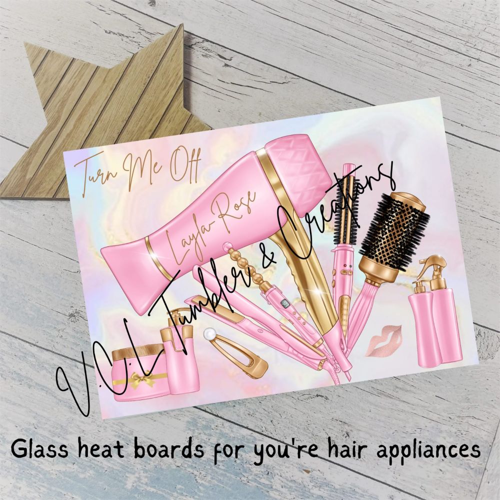 Personalised A4 glass cosmetic heat proof boards, complete with personalised name or company name along with been heat resistant.