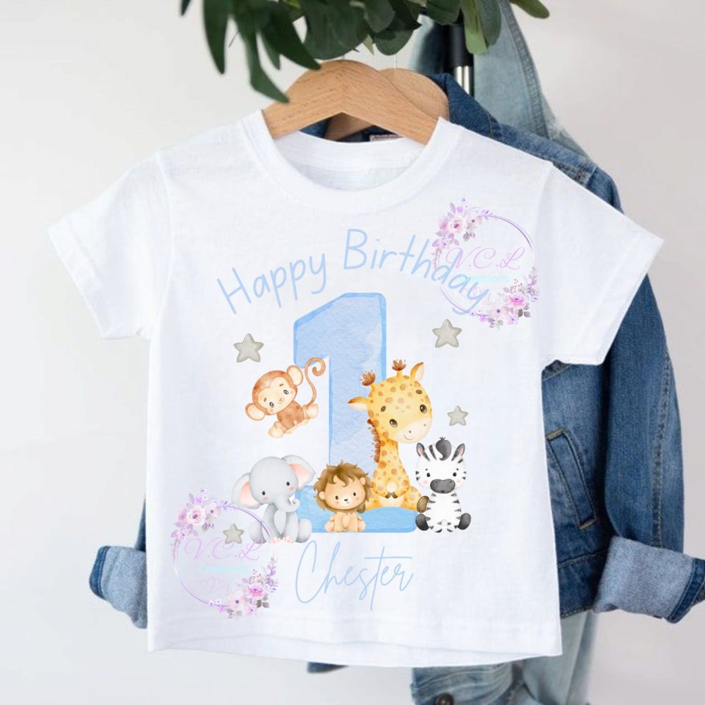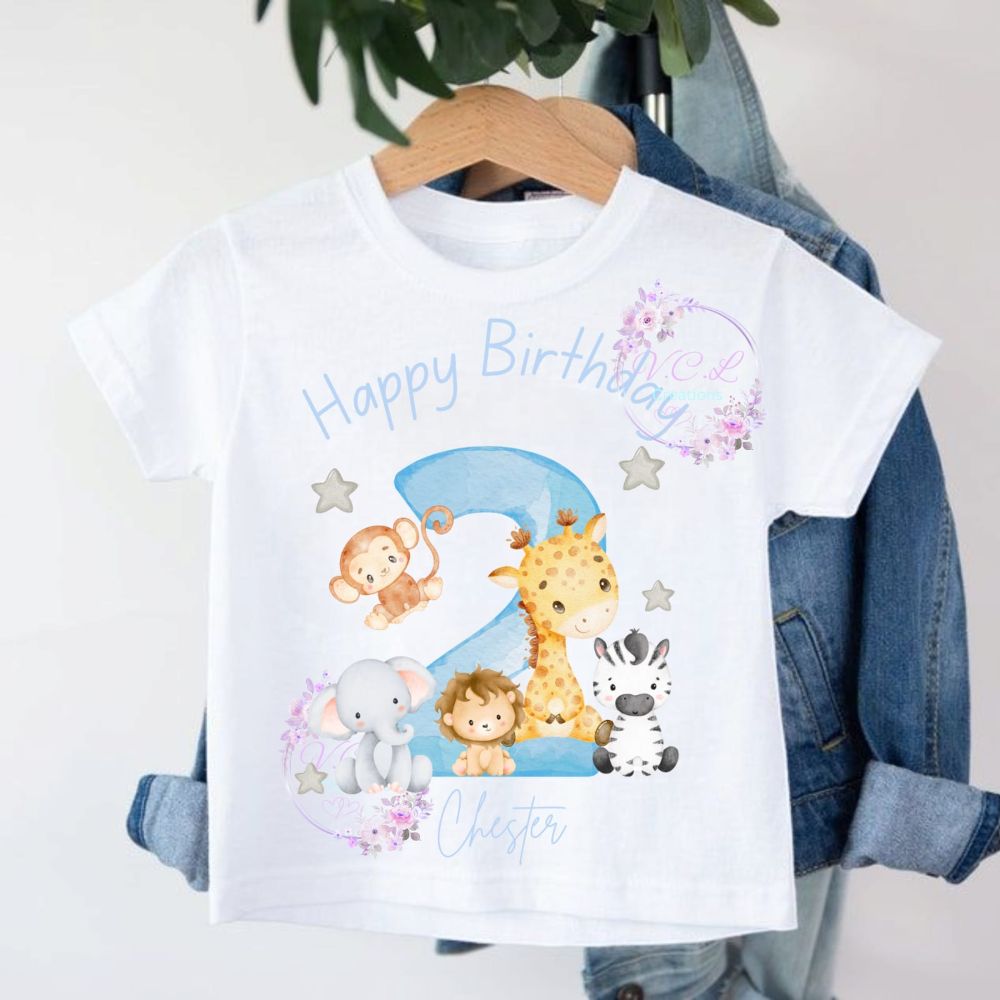 Have you little one celebrate their birthday in style with one our unisex birthday t shirts, with stunning stand out bright vibrant colours using high quality ink to make the colours pop, along with been printed onto a high quality soft touch polyester t shirt either 100 percent soft touch polyester or 65% polyester 35% cotton soft touch t shirt. These t shirts are fully machine washable due to the high quality ink we use it provides longer lasting bold vibrant colours even when washed, while been soft and comfortable these t shirts are visually stunning and are sure that they will stand out on their special day. Available in four sizes, how ever if you require a larger size or higher age on the t shirt please feel free to contact us and take advantage of our free design service.